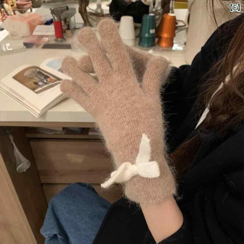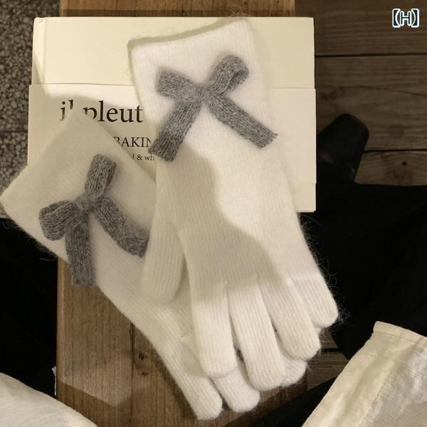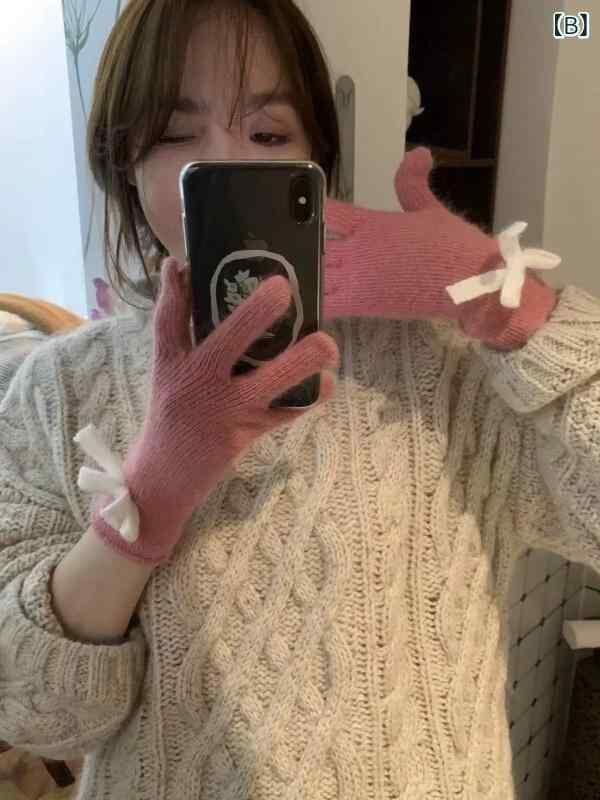 手袋 レディース かわいい ニット リボン ラビットファー 指なし スマホ対応 厚手 あったか ロング 韓国風 サイクリング アウトドア 秋冬