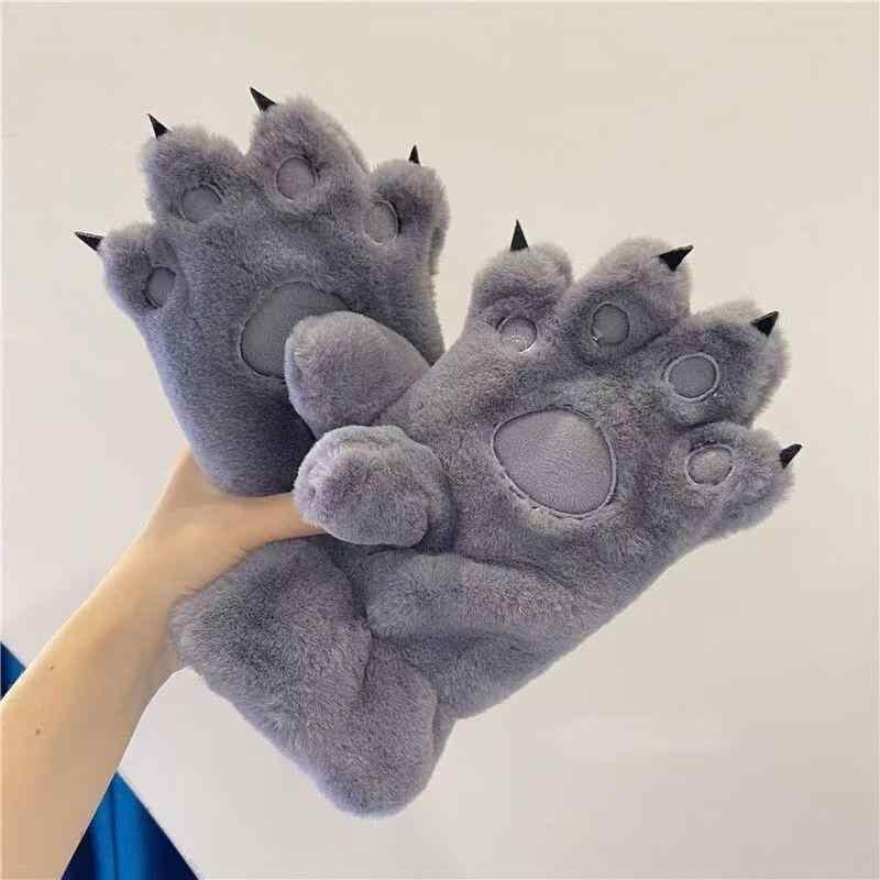 手袋 男女兼用 学生 冬 人気 肉球デザイン もこもこ ラビットファー ボア 厚手 かわいい 防風 保温 グローブ フルフィンガー 韓国風 黒 灰色 白 ピンク カーキ