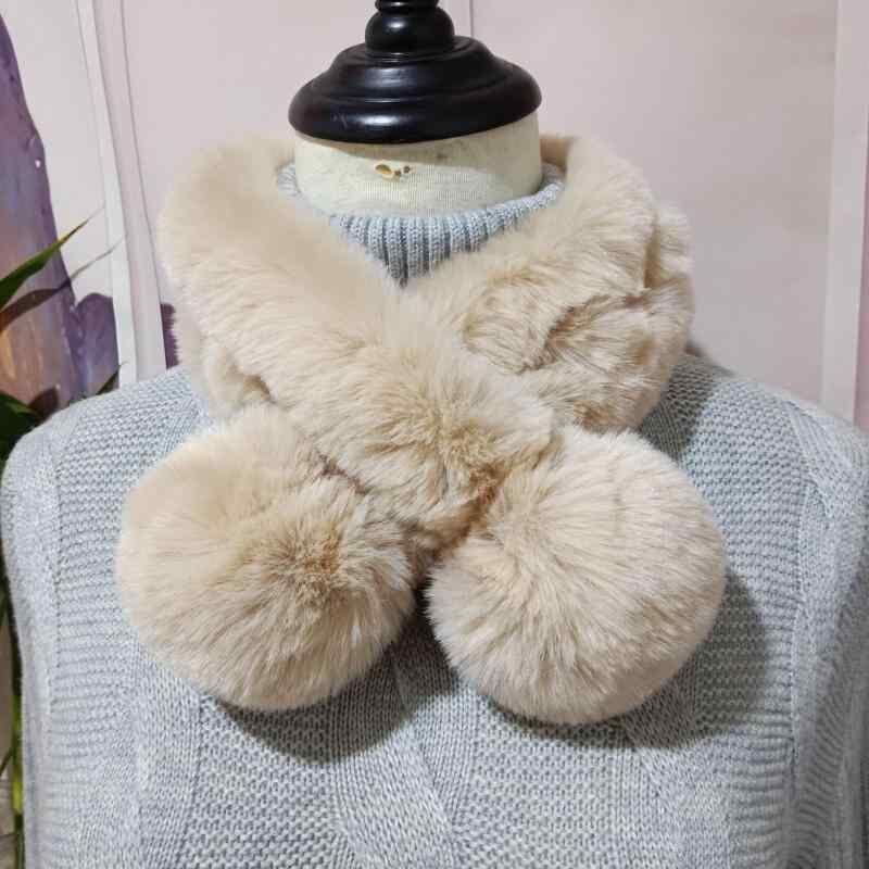 ["・機能: 保温","・カテゴリ: ネックウォーマー","・カラー展開: ベージュ、キャメル、ライトグレー、乳白色、ワインレッド、ピンク、ホワイト","・長さ: 60~80cm","・スタイル: スウィート、ナチュラル、フェミニン、キュート","・主な素材: 擬似ラビットファー","・加工: ノーアイロン","・サイズ: 12×70cm"]