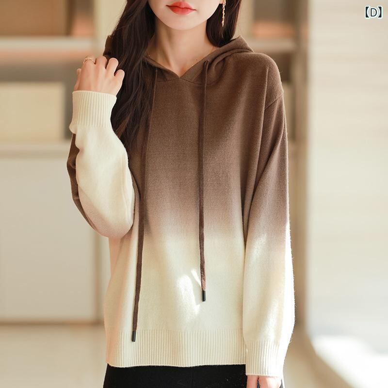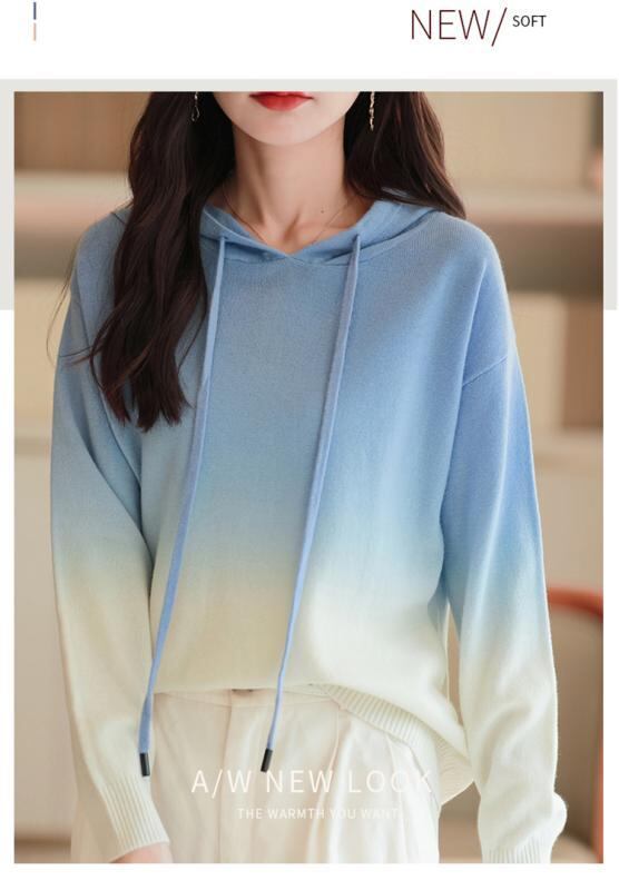 ニットパーカー レディース グラデーション フード付き ゆったり ルーズ 韓国ファッション 秋冬 ショート丈 再生繊維 長袖 プルオーバー 中厚手 トップス 快適 カジュアル