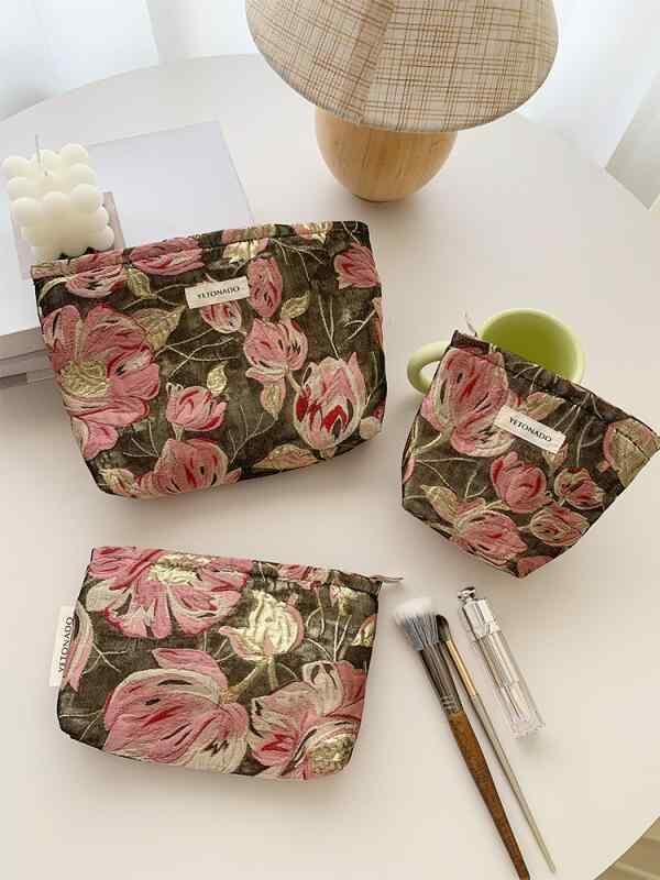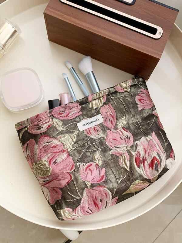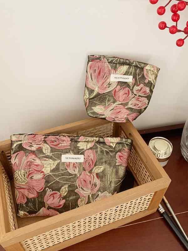 コスメポーチ レディース 刺繍 花柄 大容量 携帯用 スキンケア メイク トラベル 洗面用 オーガナイザー バッグインバッグ 春夏