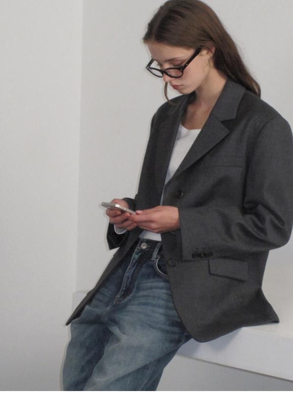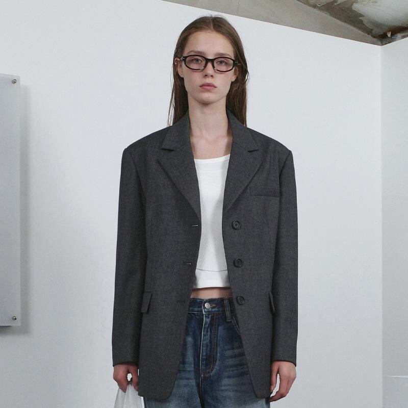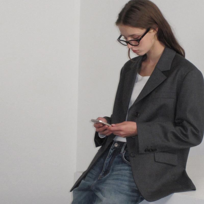 ジャケット レディース グレー ウール 秋冬 長袖 無地 カジュアル きれいめ オフィス ビジネス 通勤 上品 個性派 デザイナーズ ブレザー アウター