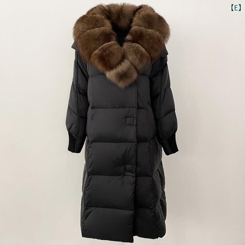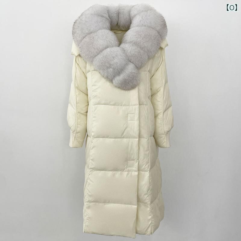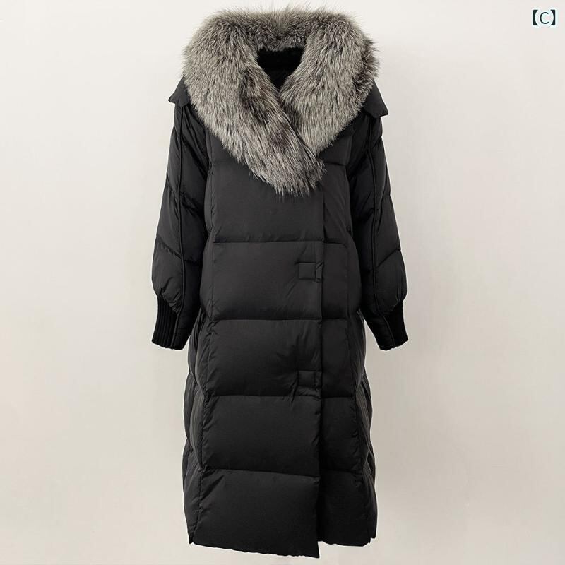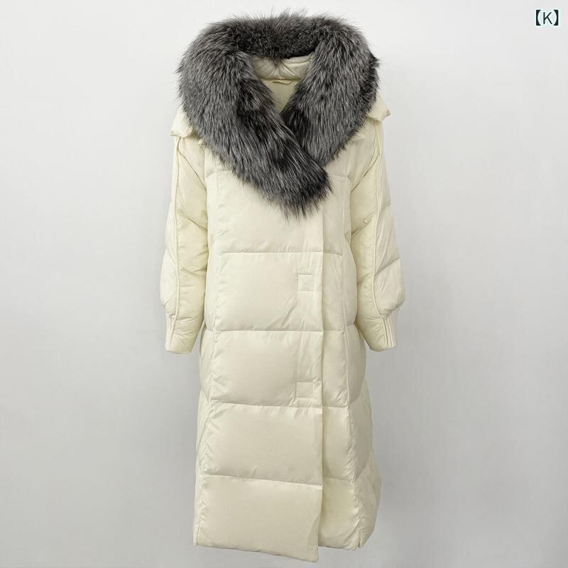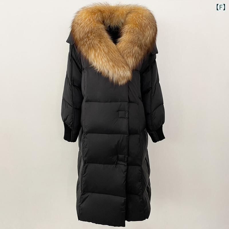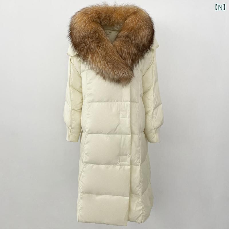 ダウンジャケット レディース フォックスファー襟 ホワイトグース使用 ミドル丈 ゆったり 厚手 防寒 ポリエステル ポケット付き きれいめ 通勤 冬 アウター コート