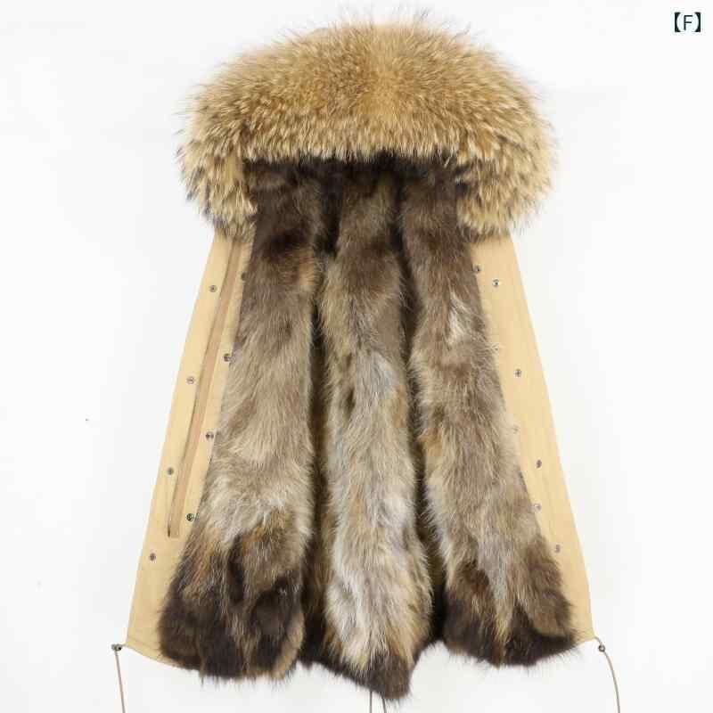コート レディース ミンクファー タヌキファー リアルファー ライナー付き ボリュームファー襟 フード付き ミドル丈 モッズコート カジュアルスタイル 防寒 厚手 秋冬 ブラック グレー カーキ