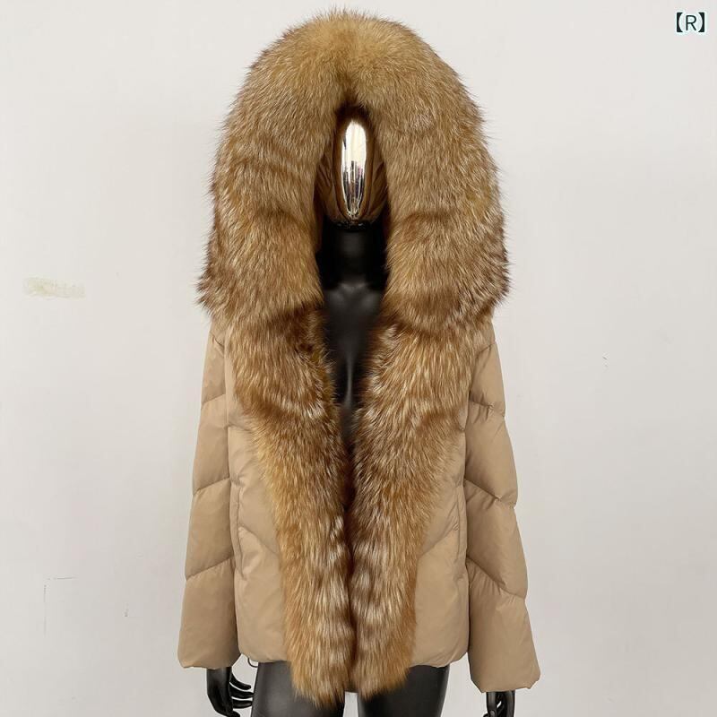 ダウンコート レディース フォックスファー フード付き ホワイトダックダウン 厚手 暖かい 防寒 保温 高級感 エレガント 上品 ゆったり 通勤 カジュアル ジップアップ ミドル丈 ポケット付き 秋冬 ポリエステル アウター