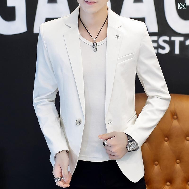 ジャケット メンズ 男性用 カジュアル 春秋 韓国風 スリムフィット 軽量 無地 普段使い シングルブレスト 1つボタン テーラードジャケット ウォッシャブル ポリエステル混紡