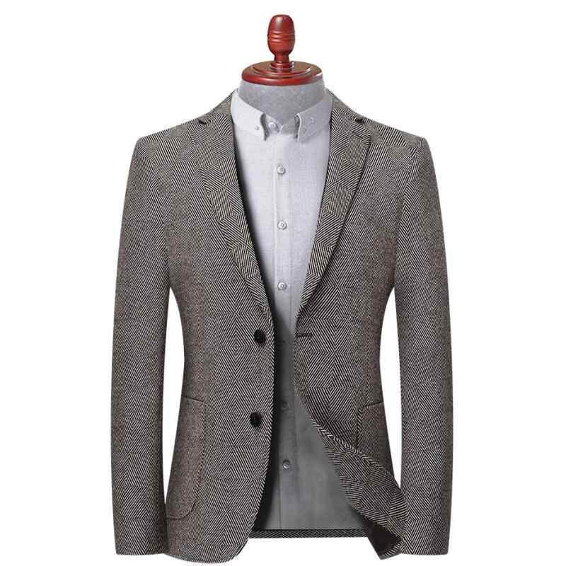 テーラードジャケット メンズ 男性用 ウール スリムフィット チェック柄 形状記憶 シワ防止 通気性 洗濯可能 ビジネス カジュアル シングル2つボタン ブラック系 グレー系 アウター