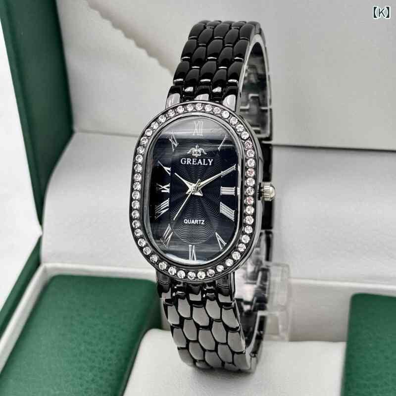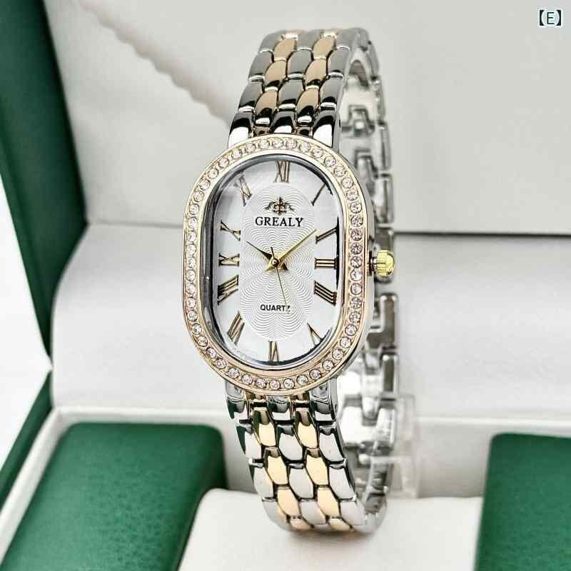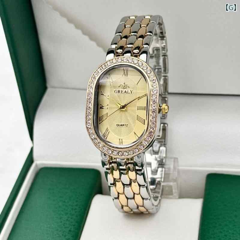 腕時計 レディース 高級感 ジルコニア 楕円形 ローマ文字盤 クォーツ 合金製 ゴールド シルバー ツートン おしゃれ ファッション エレガント 普段使い オフィス