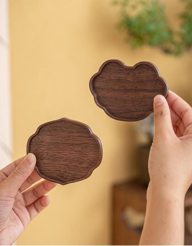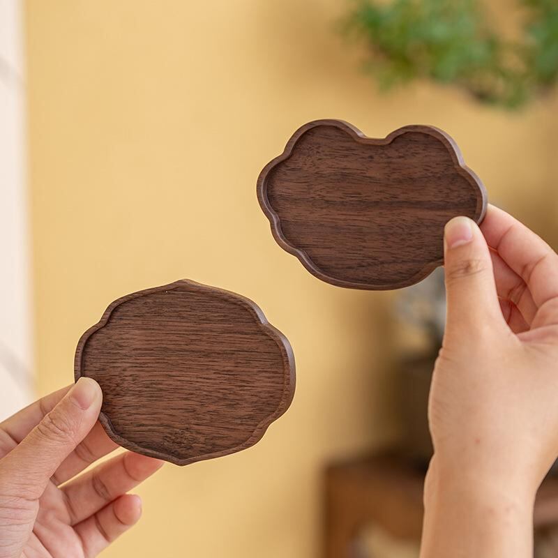 コースター ブラックウォールナット 無垢材 天然木 耐熱 断熱 茶托 茶碗敷き 中国茶 茶道 禅風 新中華風 和モダン 来客用 おもてなし おしゃれ インテリア雑貨 高級感