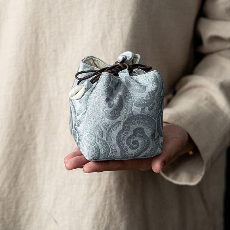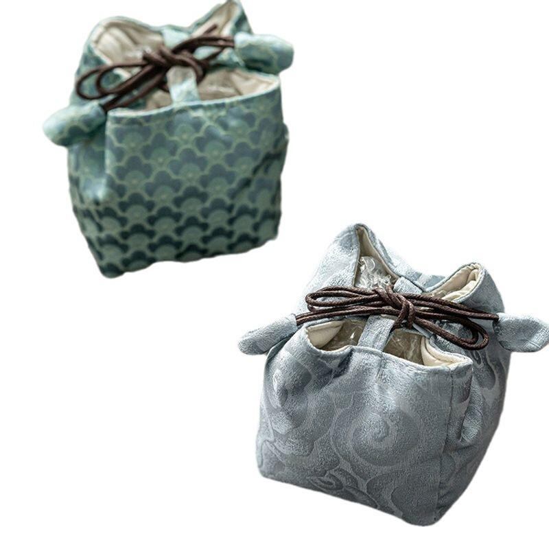 収納袋 携帯用 茶器 茶道具 茶筒 急須 建盞 茶碗 厚手 巾着 布製 ポーチ 保護ケース 旅行 アウトドア 普段使い 和風 シンプル 丈夫 軽量
