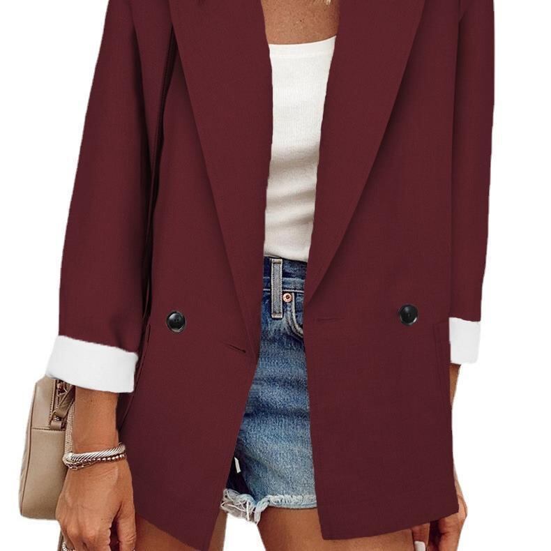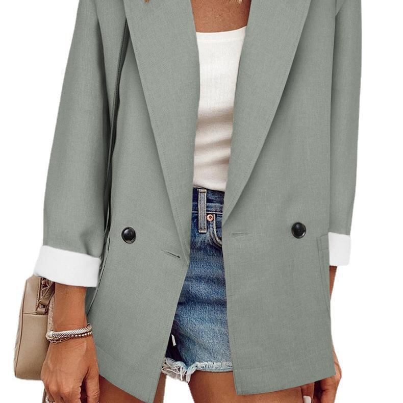 レディース テーラードジャケット 秋冬 無地 長袖 ゆったり オーバーサイズ ミドル丈 欧米風 アウター 羽織り オフィス 通勤 普段使い カジュアル ストリート リラックス ダブルブレスト 切り替え ポリエステル