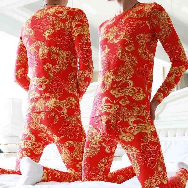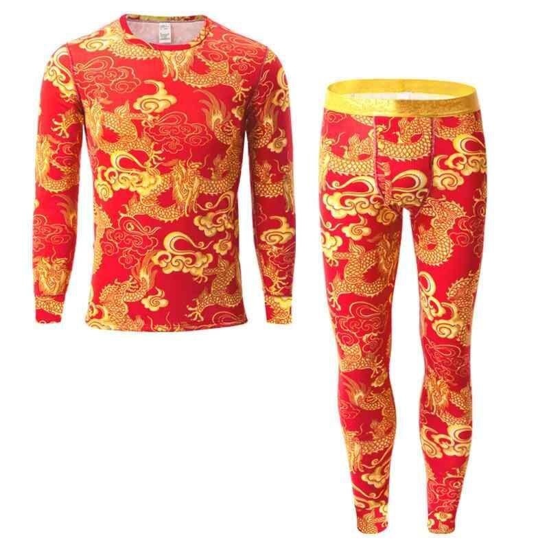 インナー メンズ 秋冬 保温 上下セット コーマ綿 高伸縮性 ストレッチ 肌触り良い 部屋着 普段使い ライトラグジュアリー 赤龍柄 前開き