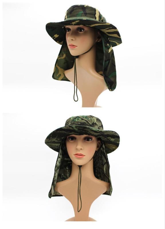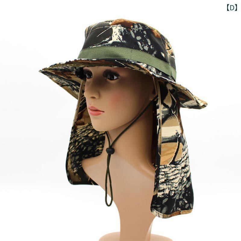 サファリハット メンズ 男性用 アウトドア キャンプ 登山 釣り UVカット 日よけ 紫外線対策 通気性 つば広 ワイドブリム フラットトップ ジャングル迷彩 カモフラージュ柄 ショール付き ポリエステル