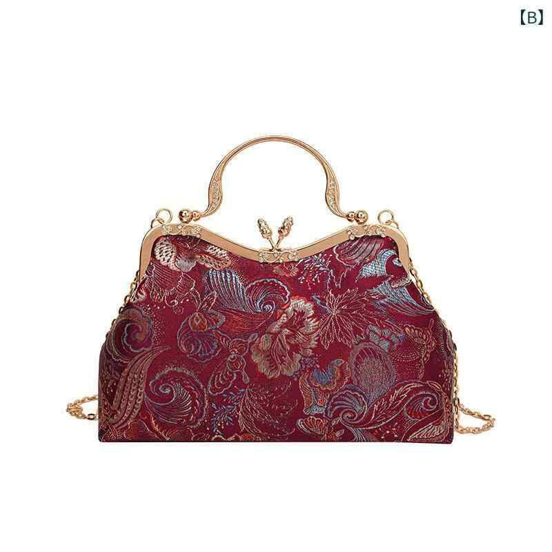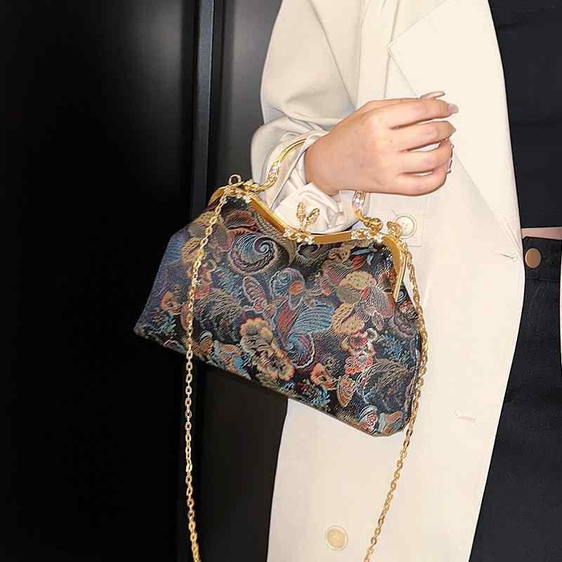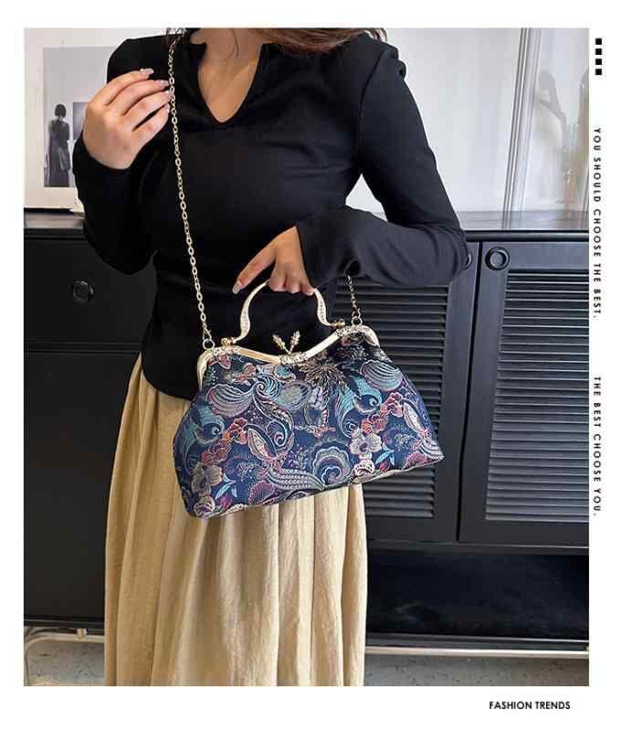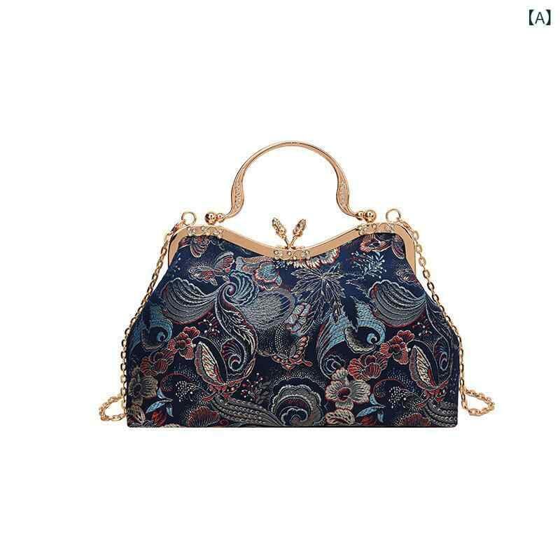 バッグ レディース レトロ 刺繡 がま口 チャイナ風 キャンバス スクエア型 ショルダーバッグ チェーンバッグ 手提げ 普段使い お出かけ 多色展開 秋冬