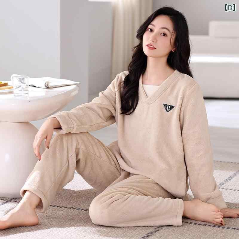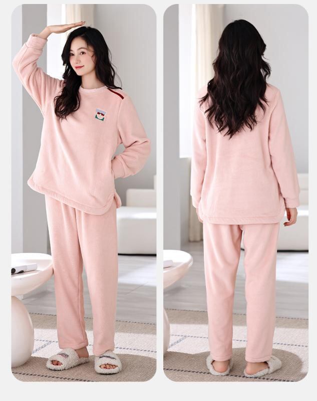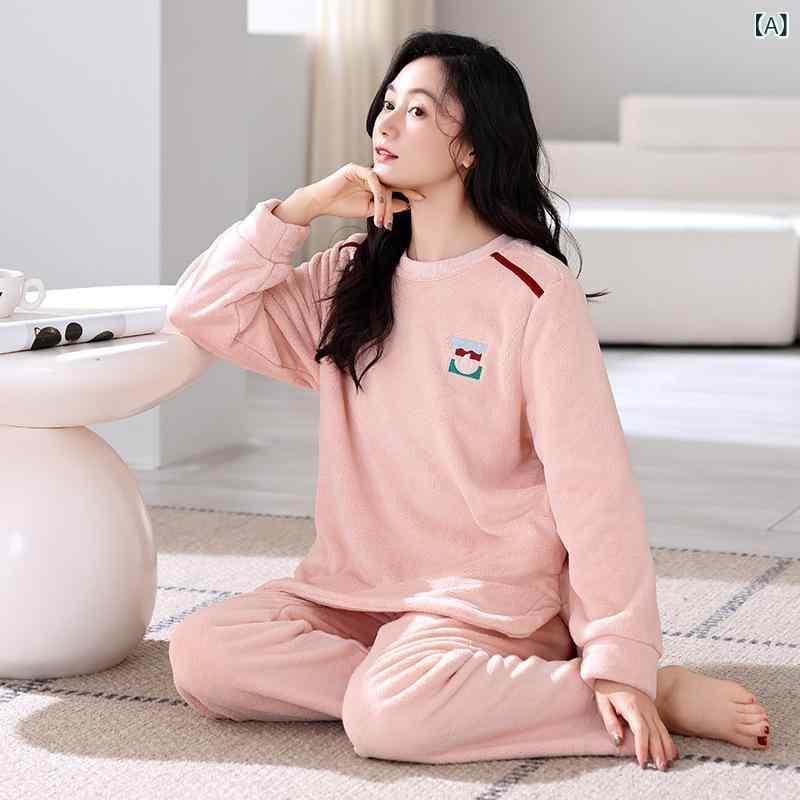 ルームウェア レディース サンゴフリース パジャマ 秋冬 長袖 上下セット 厚手 裏起毛 あったか 部屋着 ワンマイルウェア カジュアル 女性用 保温 快適 ロングパンツ