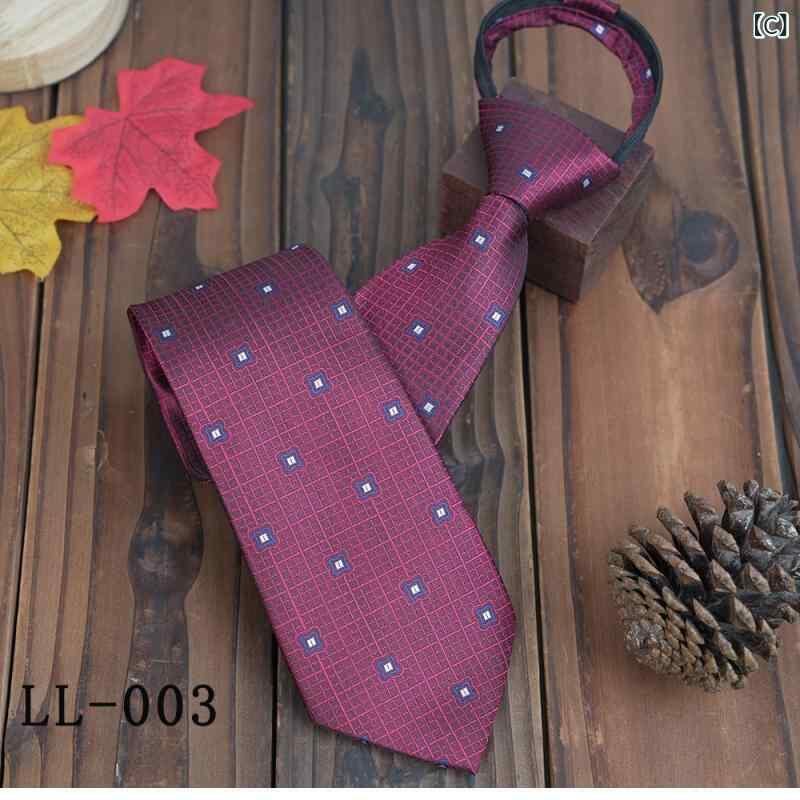 ネクタイ メンズ 男性用 結婚式 新郎 慶事 ブライダル ワンタッチ ファスナー ストライプ 赤 レッド 8cm幅 ポリエステル