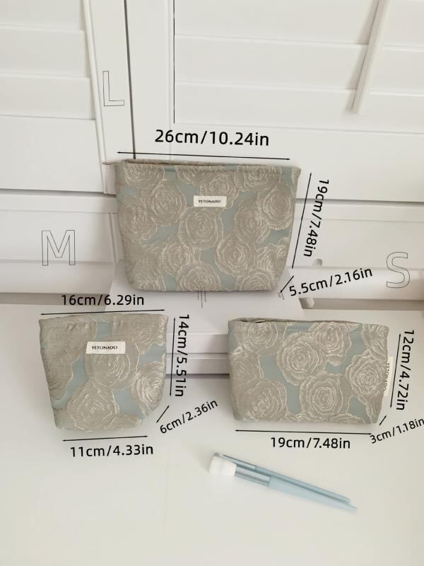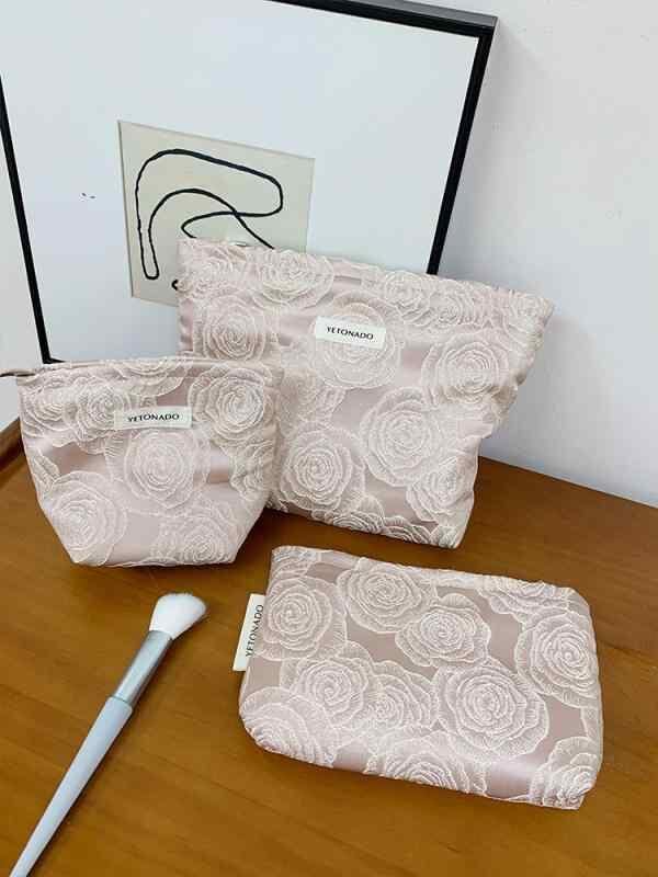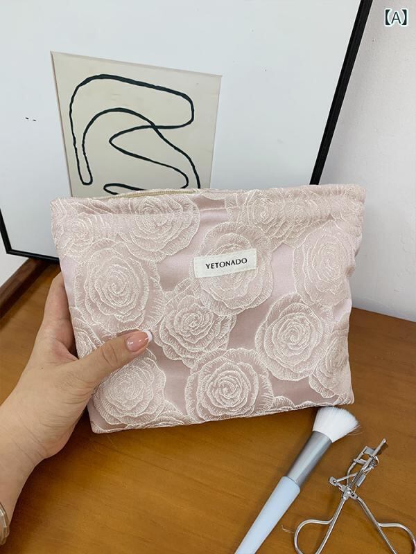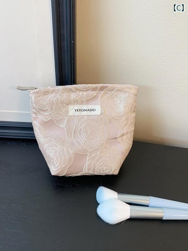 ポーチ レディース 女性用 エンボスローズ 花柄 大容量 ミニ スクエア型 化粧 収納 整理 携帯 トラベル お出かけ 普段使い デイリー かわいい 上品 ポリエステル 裏地キャンバス ピンク ブルー
