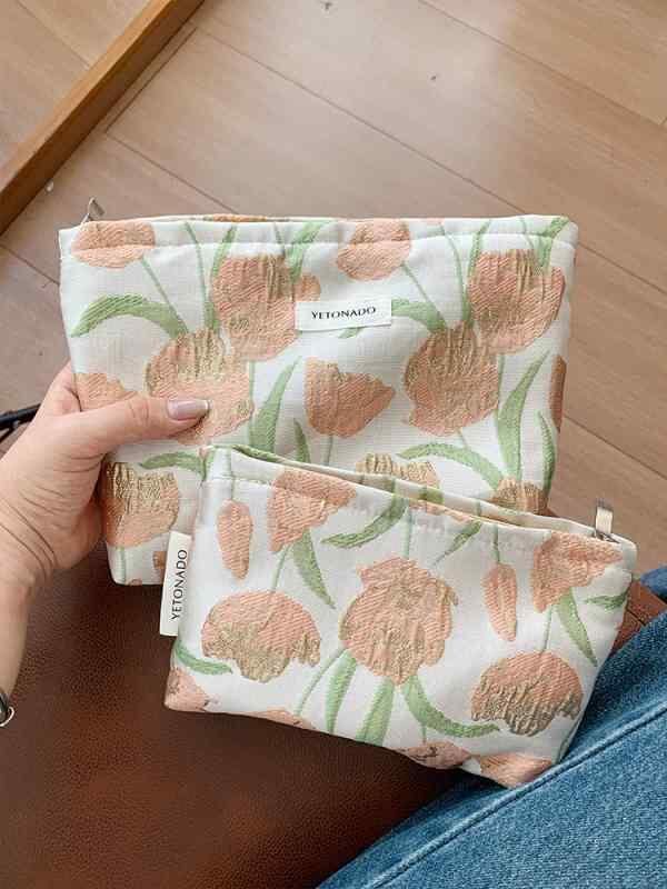 化粧ポーチ レディース かわいい 金糸 浮彫り チューリップ柄 大容量 携帯用 手持ち 普段使い スキンケア用品 旅行用 洗面用品 バッグインバッグ 収納 小物入れ