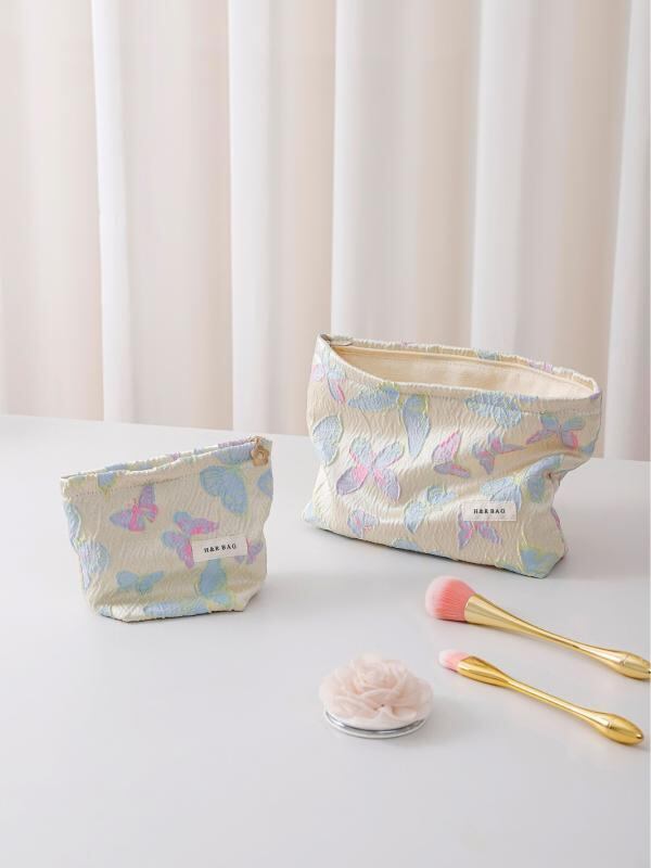 化粧ポーチ レディース カラフル 蝶 高級感 収納 携帯用 スキンケア コスメ トラベル 小物入れ 帆布 キャンバス 花柄