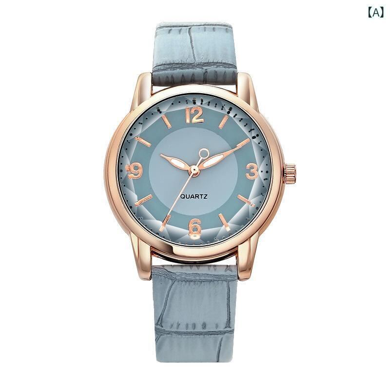 腕時計 レディース 女性用 クォーツ アナログ ラウンド 丸型 合皮 フェイクレザー おしゃれ カジュアル 普段使い シンプル アクセサリー感覚 合金ケース ピンバックル ブルー