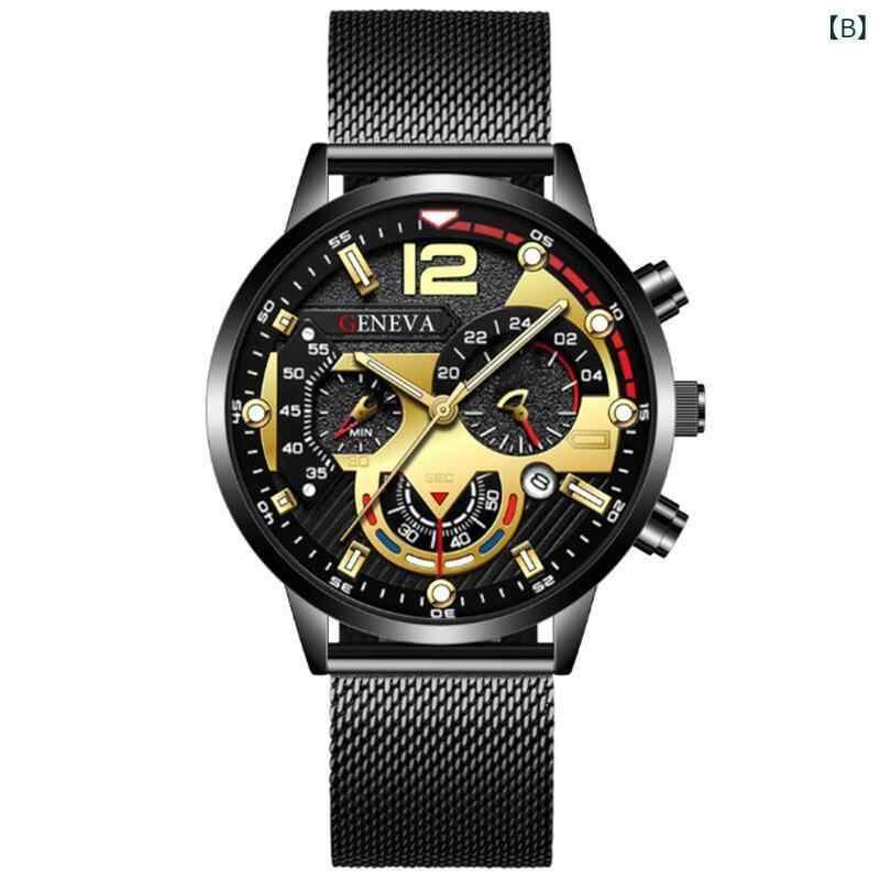 腕時計 メンズ クォーツウォッチ メッシュベルト 日付表示 薄型 シンプル スタイリッシュ カジュアルスタイル ビジネス 普段使い 合金製