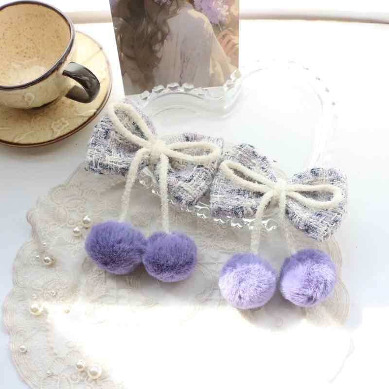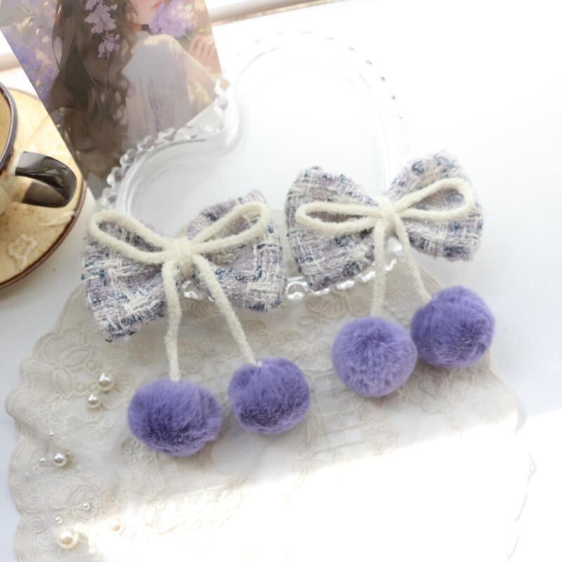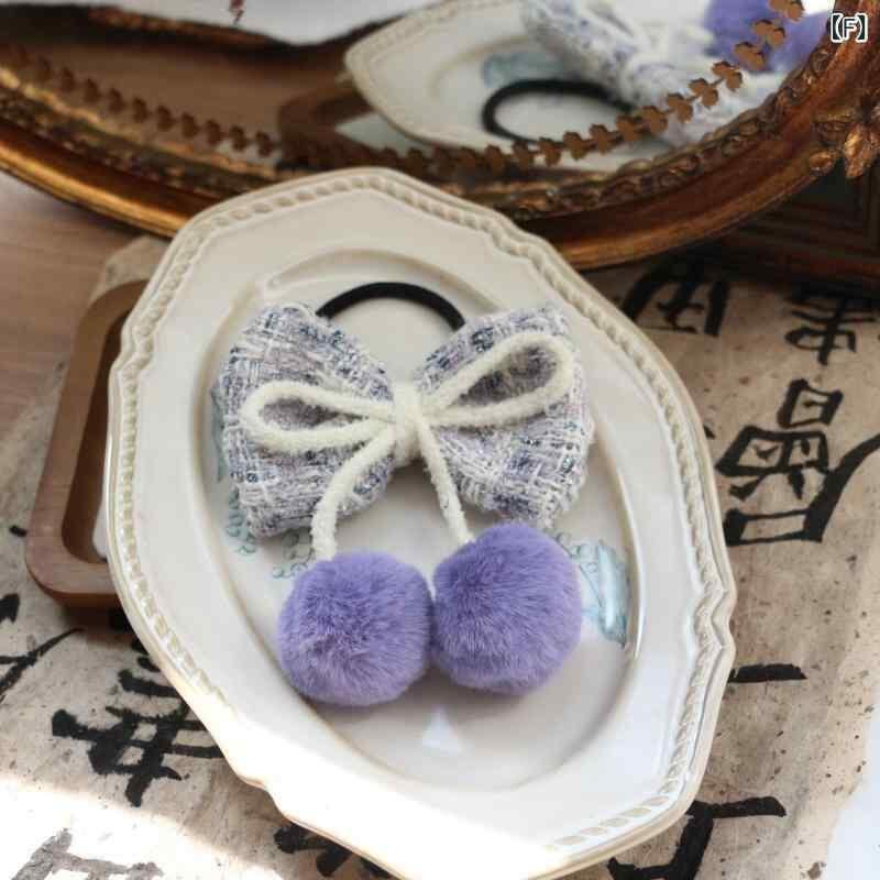 アクセサリー 女の子 キッズ かわいい パープル もこもこ ポンポン リボン ハンドメイド 靴チャーム シューレース飾り ワンポイント デコレーション ヘアクリップ 髪留め フェミニン ガールズファッション