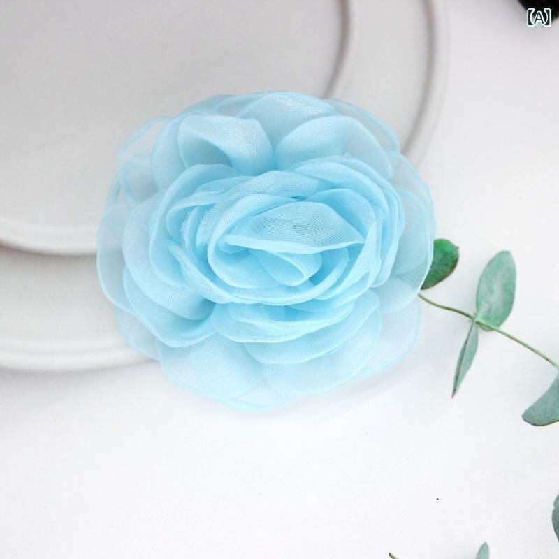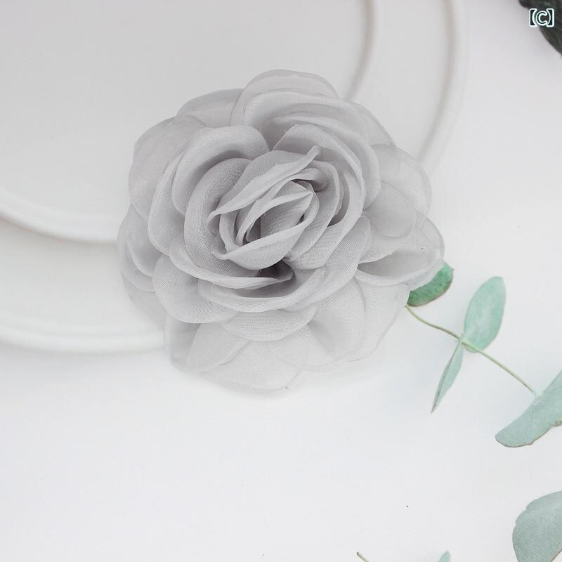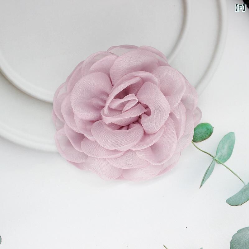 ヘアアクセサリー レディース 8cm 韓国風 手作り ハンドメイド クリスタルオーガンジー カメリア 焼き花 布製 フラワーコサージュ ブローチ バンスクリップ シュークリップ DIYパーツ 多色展開 レトロ エレガント