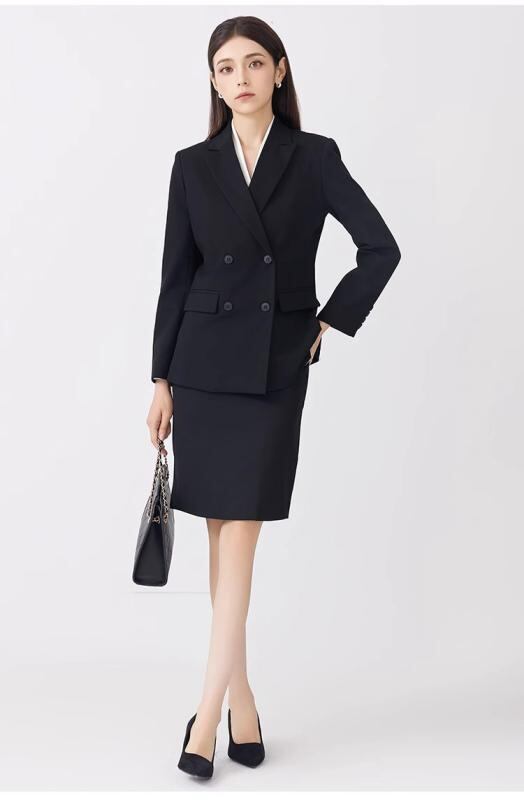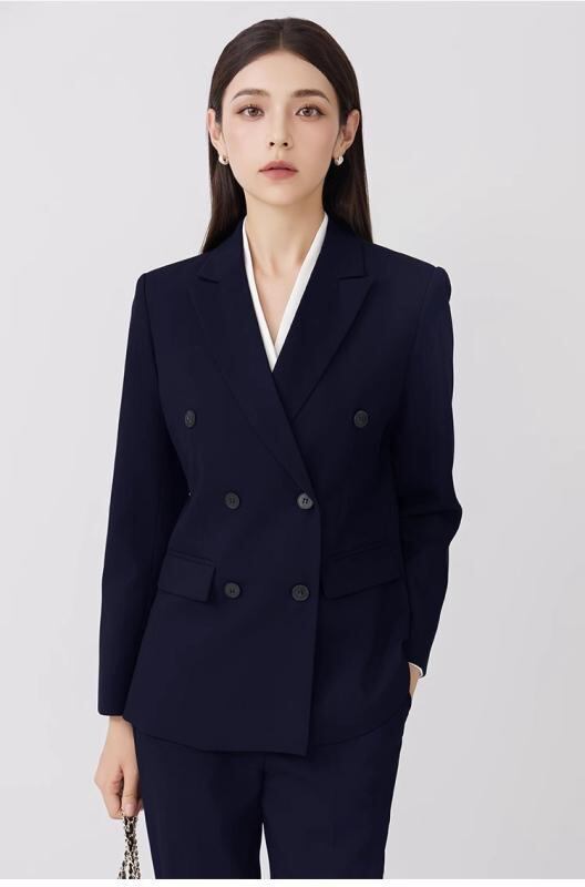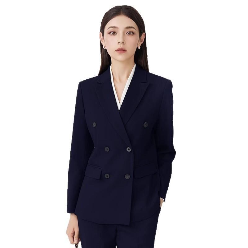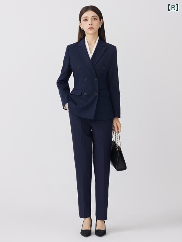 スーツ レディース ビジネス オフィス フォーマル 通勤 面接 リクルート 高級感 上品 ダブルボタン ジャケット ロングパンツ セットアップ 2点セット 長袖 ポリエステル ブラック ネイビー 秋冬