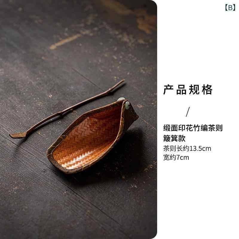 茶器 竹製 手作り サテン調 シフォン 中国茶道用具 茶則 茶荷 茶匙 投茶器 和モダン おしゃれ 高級感 上品 来客用 おもてなし 普段使い 自然素材 竹の葉柄 箕柄