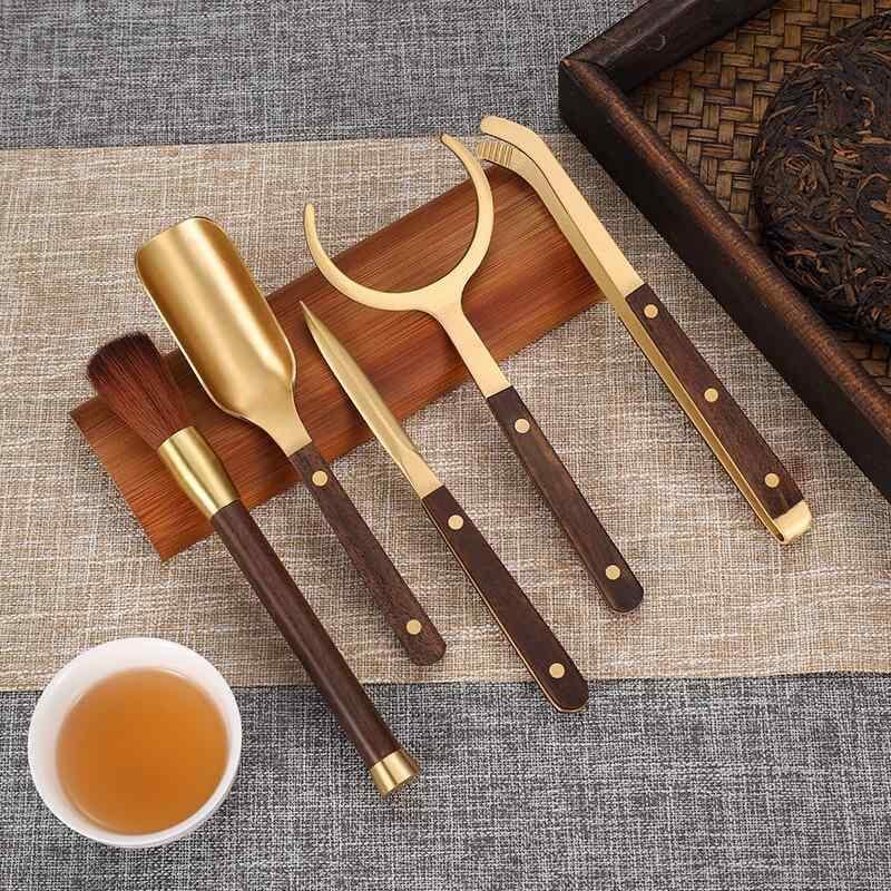 茶道具 真鍮 高級感 天然木 黒檀 花梨製 おしゃれ 茶道六君子 セット 茶挟み 茶匙 茶刀 養壺筆 中国茶器 普段使い 来客用