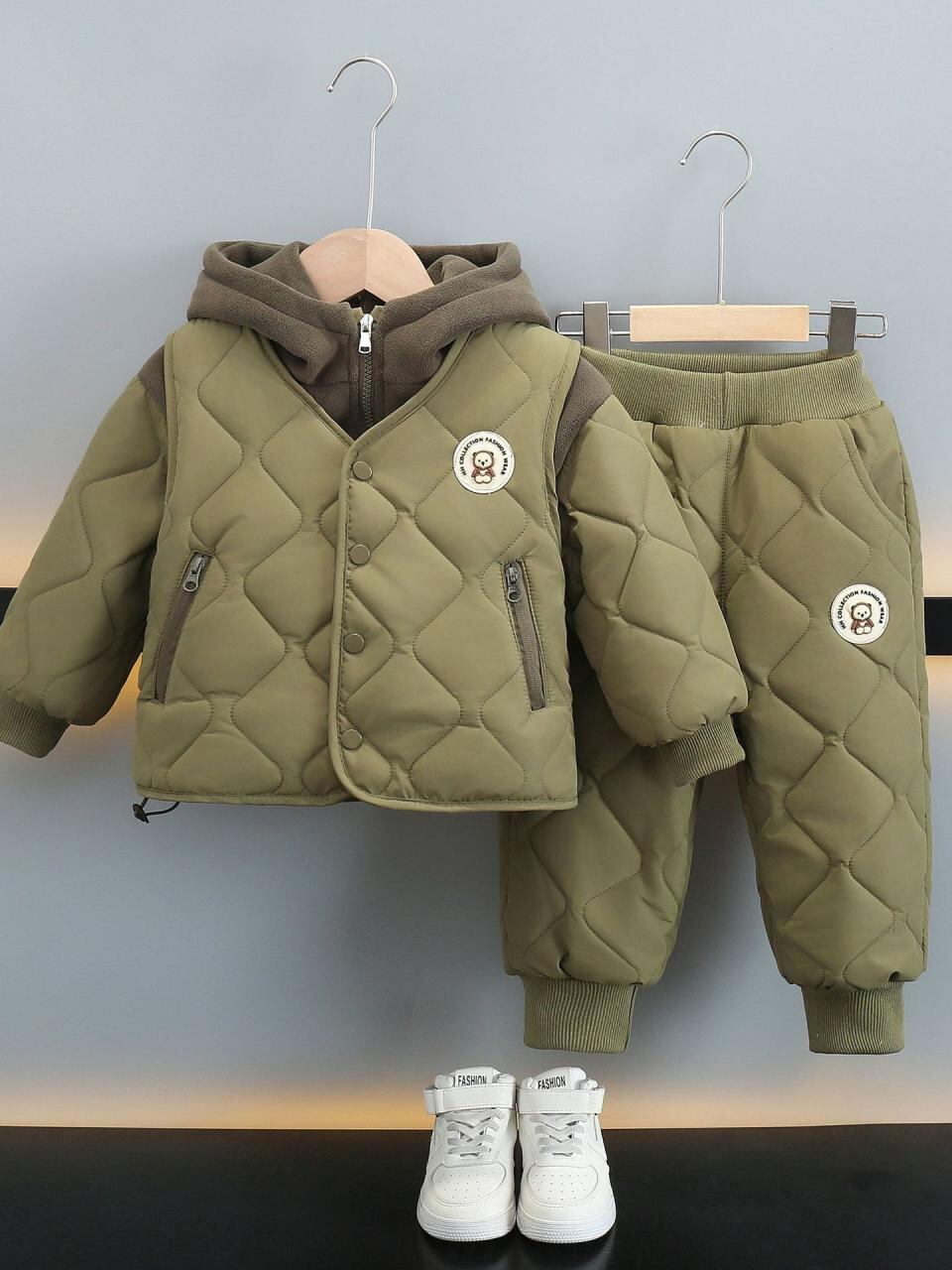セットアップ キッズ 男の子 ベスト パンツ チョッキ ズボン 上下セット 裏起毛 厚手 暖かい あったか 防寒 保温 コットン カジュアル 韓国スタイル スポーティ 秋冬 通園 通学 普段使い お出かけ 3点セット