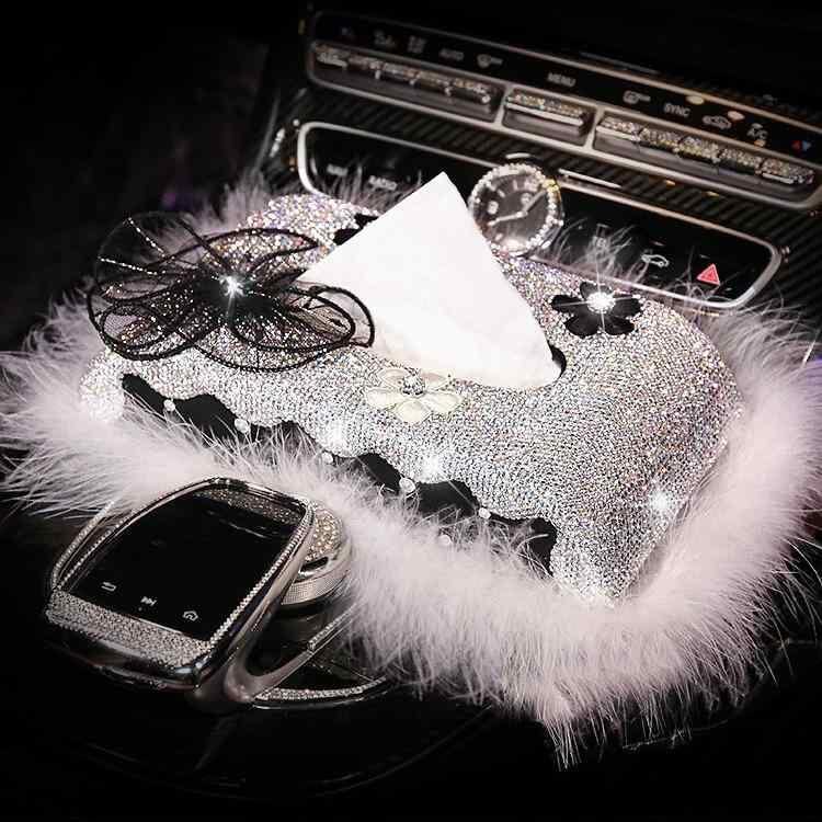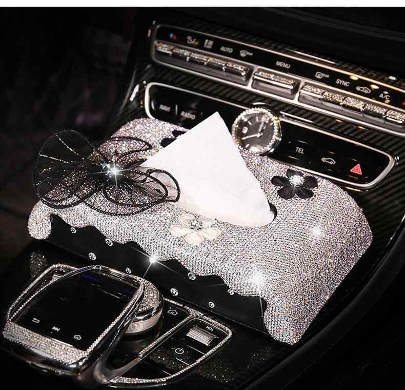 ティッシュケース レディース 車載 アームレストボックス 卓上 白鳥 スワン デイジー ラインストーン キラキラ レザー 合皮 おしゃれ かわいい 高級感