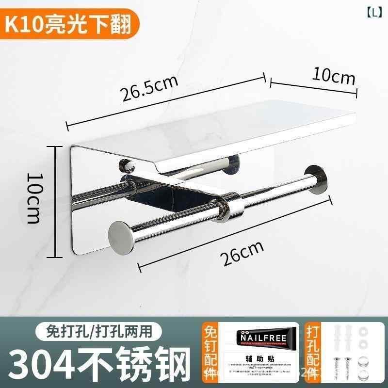 トイレットペーパーホルダー ステンレス製 ティッシュケース 壁掛け 穴あけ不要 粘着式 防水 防錆 バスルーム トイレ 洗面所 多機能収納 ホテル仕様