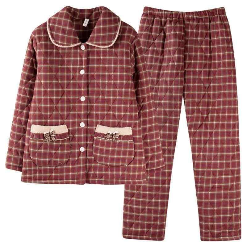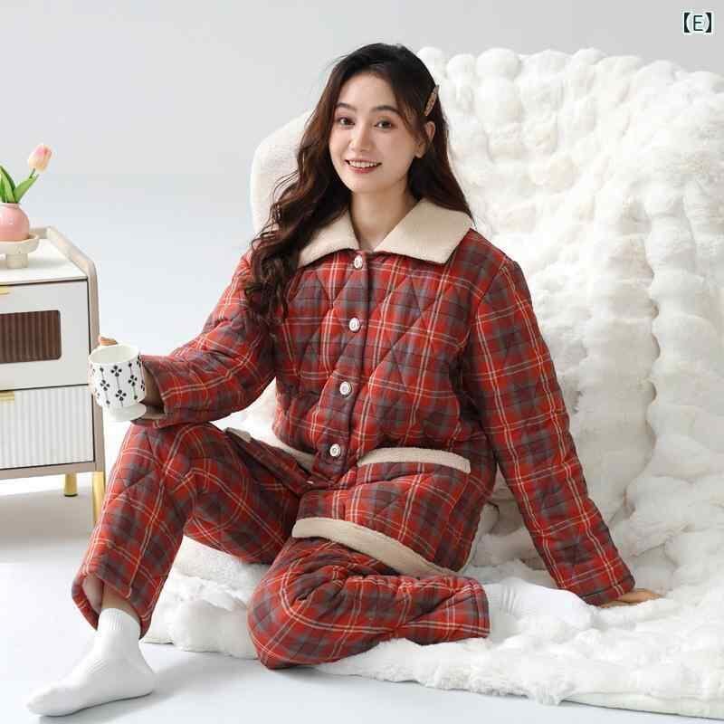 パジャマ レディース 冬用 3層構造 厚手 中綿入り 純綿 コットン サンゴフリース 裏起毛 あったか 保温 防寒 快適 開襟 長袖 長ズボン セットアップ ルームウェア 部屋着