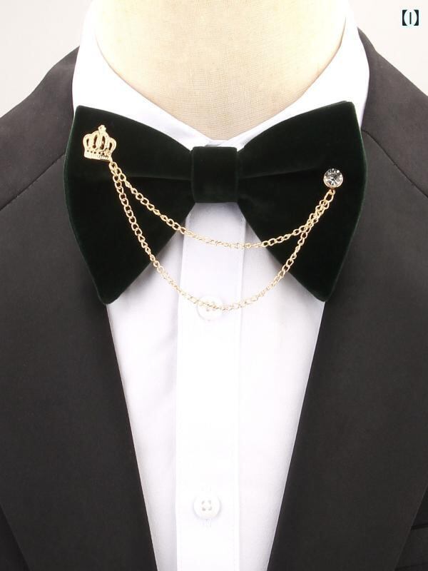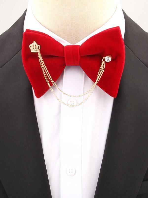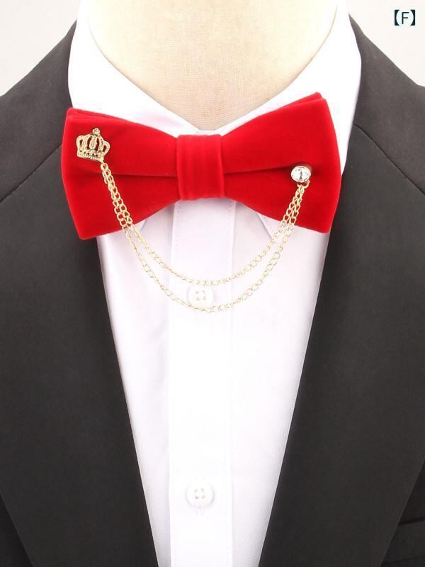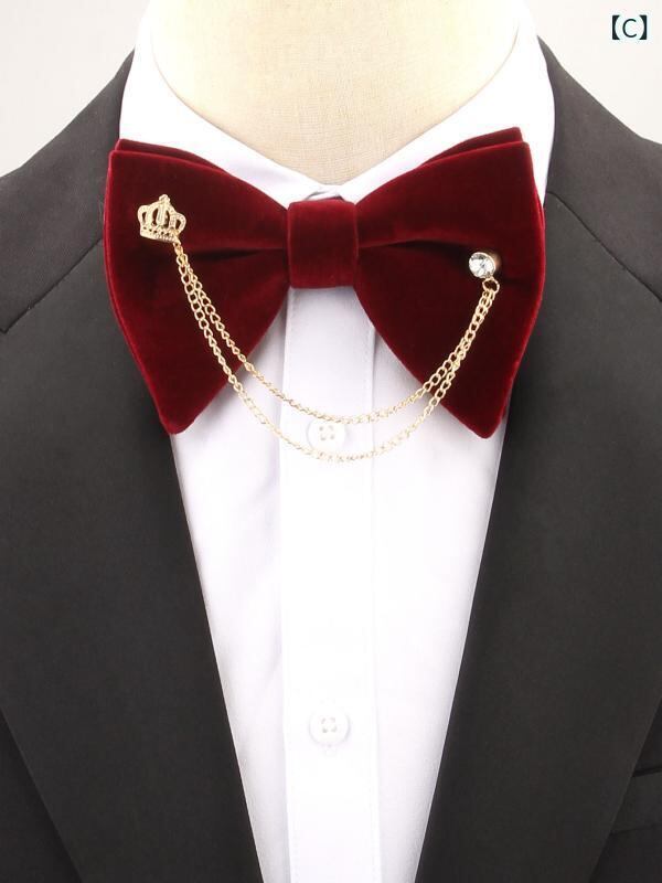 蝶ネクタイ ボウタイ 男性用 メンズ ベルベット ベロア ダブルレイヤー 金属チェーン付き 無地 ラインストーン ジルコニア装飾 高級感 エレガント 結婚式 披露宴 宴会 パーティー フォーマル スーツ 礼服