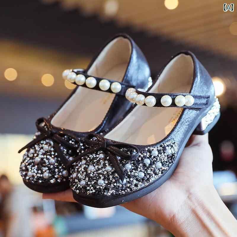 シューズ 女の子 プリンセスシューズ キッズ ガールズ フォーマル ダンス 発表会 合成皮革 パンプス ブラック ピンク シルバー マジックテープ カジュアル 通園 通学