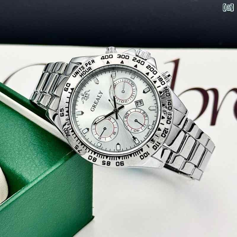 腕時計 メンズ 男性用 高級感 ビジネス クォーツウォッチ 多針 日付表示 蓄光 防水 ビッグフェイス 合金バンド ラウンド 丸型 ゴールド シルバー ブラック グリーン バイカラー