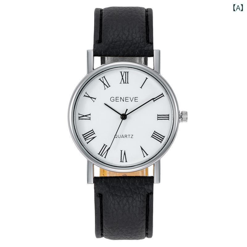 腕時計 メンズ 男性用 学生 ローマ数字文字盤 ビジネス カジュアル ファッション フェイクレザーバンド クォーツ アナログ表示 超薄型 軽量 ステンレスバックル ラウンド