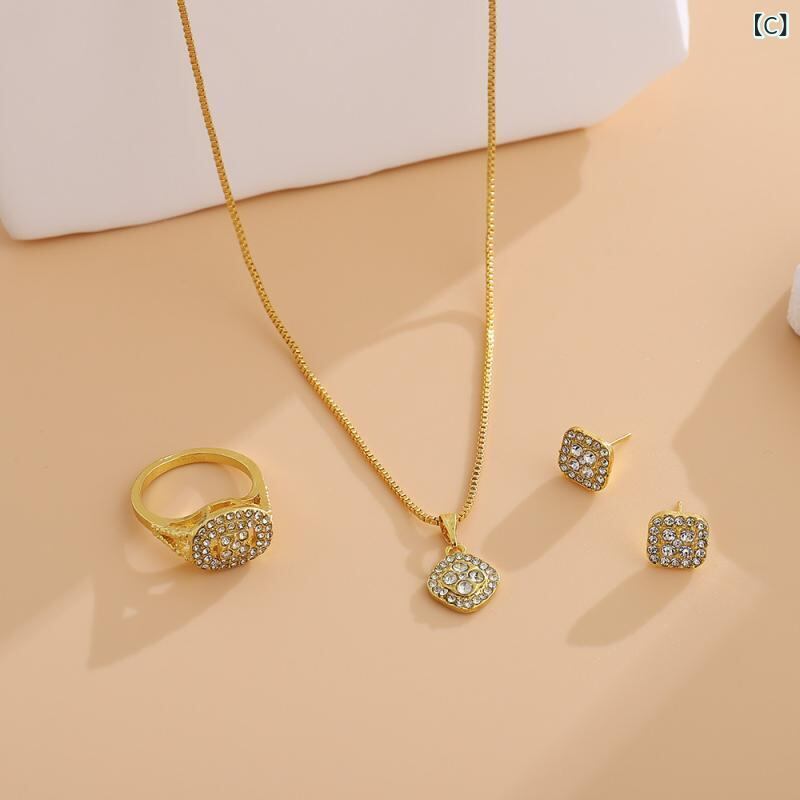 アクセサリーセット レディース シンプル ファッション ネックレス 指輪 ピアス 3点セット 合金製 電気メッキ加工 Oチェーン 通勤 オフィス デイリーユース コーデ自在 万能 ローズゴールド シルバー ゴールド オールシーズン
