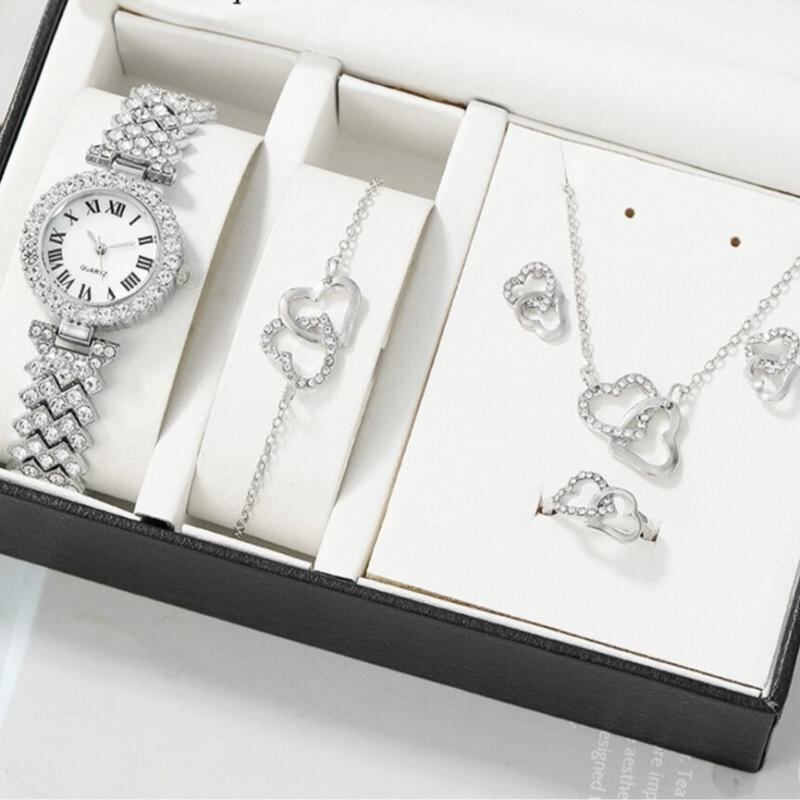 アクセサリーセット レディース 韓国風 ファッション おしゃれ シンプル カジュアル デイリー オフィス ハート ネックレス ブレスレット 指輪 ピアス 合金製 ゴールド シルバー ローズゴールド