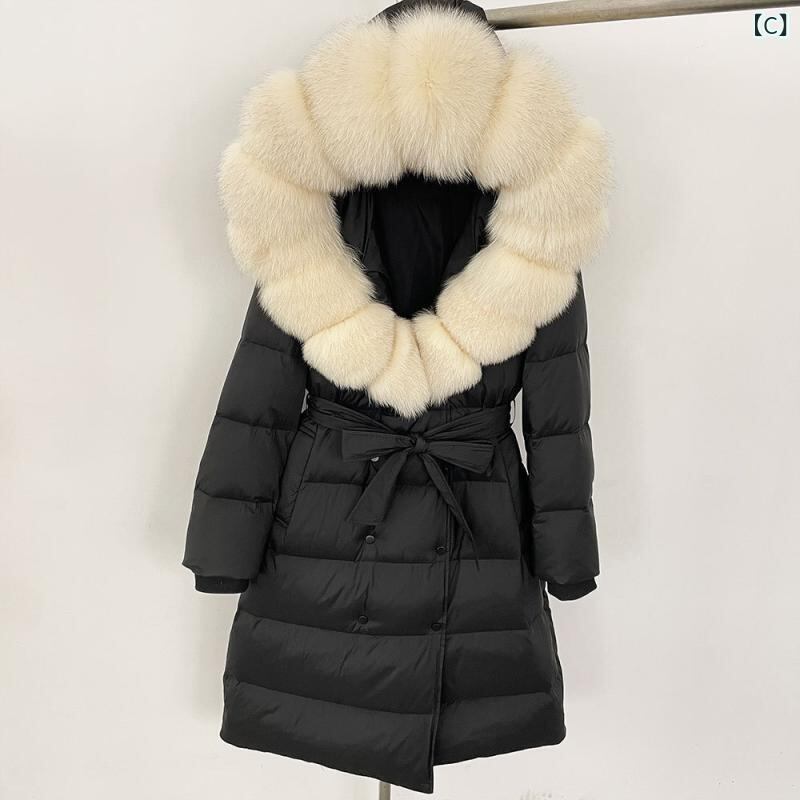ダウンコート レディース 冬 フード付き フォックスファー 軽量 高級感 ホワイトダックダウン ロング丈 ゆったり 防寒 保温 おしゃれ 通勤 お出かけ アウター ナイロン