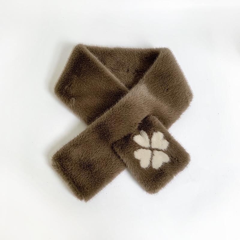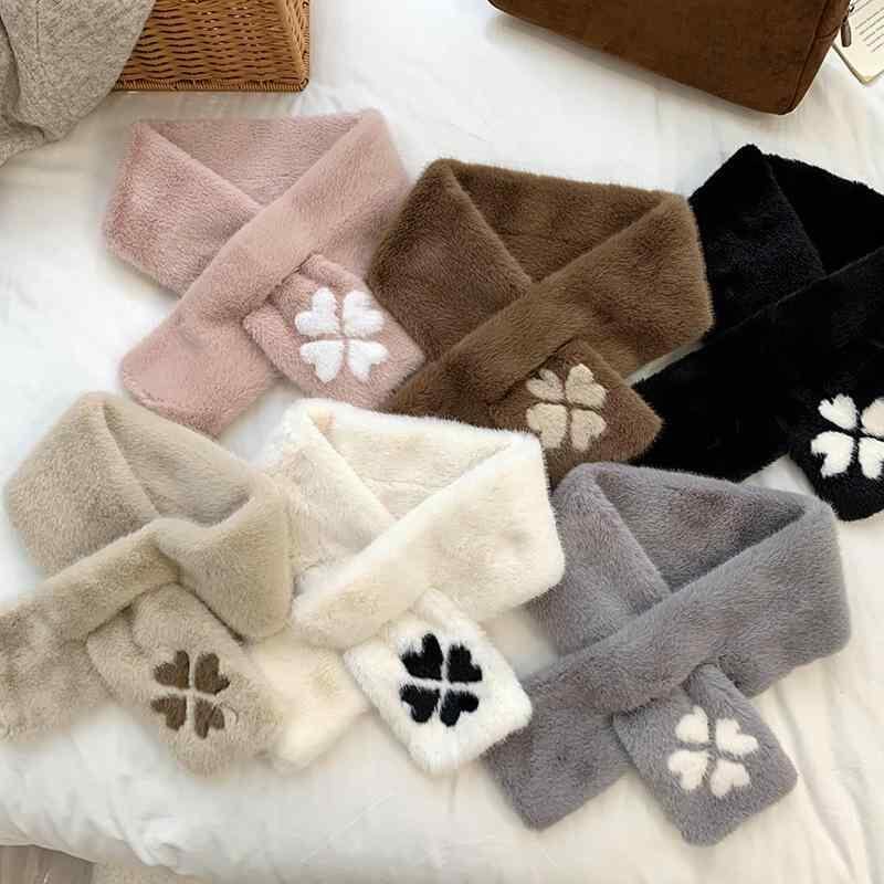スヌード レディース 女性用 高級感 エレガント おしゃれ 韓国ファッション フェイクファー ラビットファー調 もこもこ ふわふわ 四つ葉 クローバー 保温 あったか 防寒 厚手 秋冬 黒 グレー アイボリー
