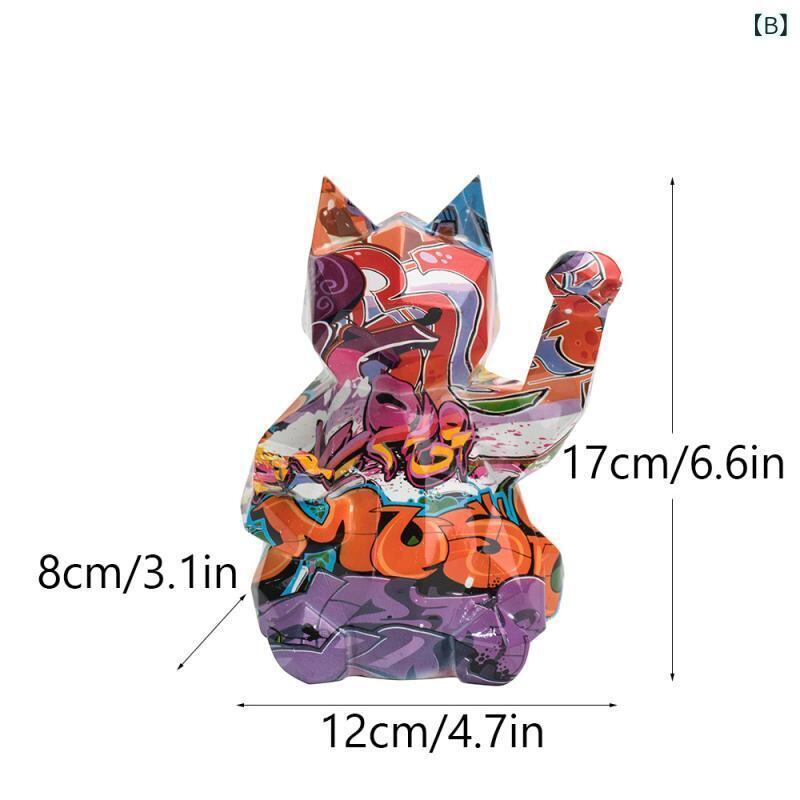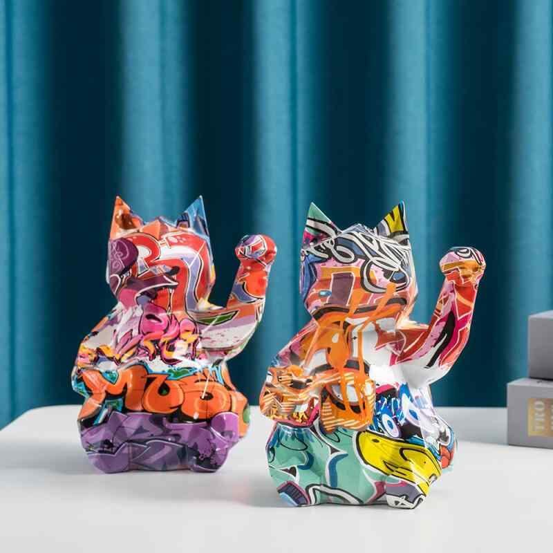 置物 招き猫 幾何学デザイン クリエイティブ 樹脂製 水転写 グラフィティアート アルファベット柄 オブジェ インテリア 装飾 リビング 玄関 デスク 卓上 新築祝い 引っ越し祝い ギフト 欧風