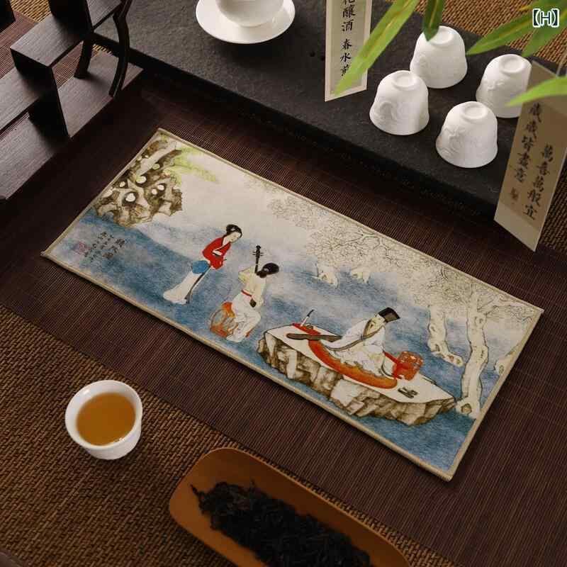 茶巾 高級感 特大 厚手 スエード調 マイクロファイバー レトロ 絵柄 吸水速乾 ティーポットケア 食卓 ティーテーブル コースター ふきん クロス