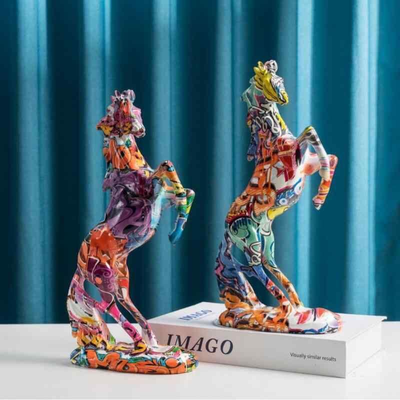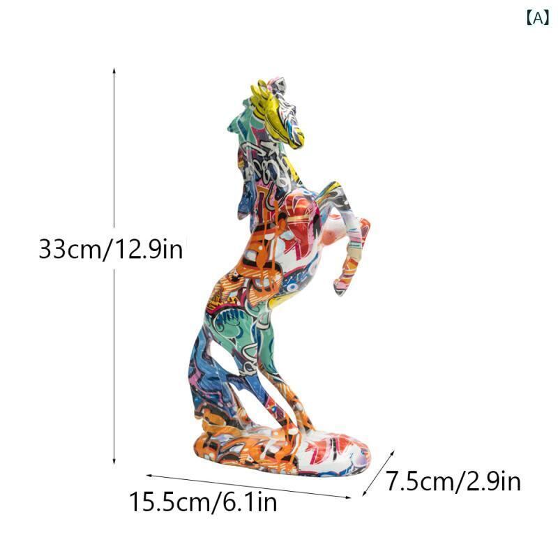置物 幸運馬 オブジェ 成功祈願 樹脂製 水転写プリント グラフィティ柄 文字柄 アメリカン スタイル インテリア リビング 玄関 ワインラック 卓上 デスク飾り 工芸品