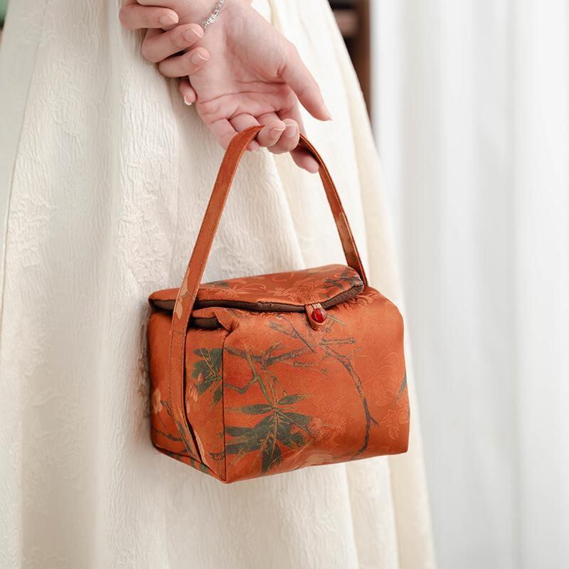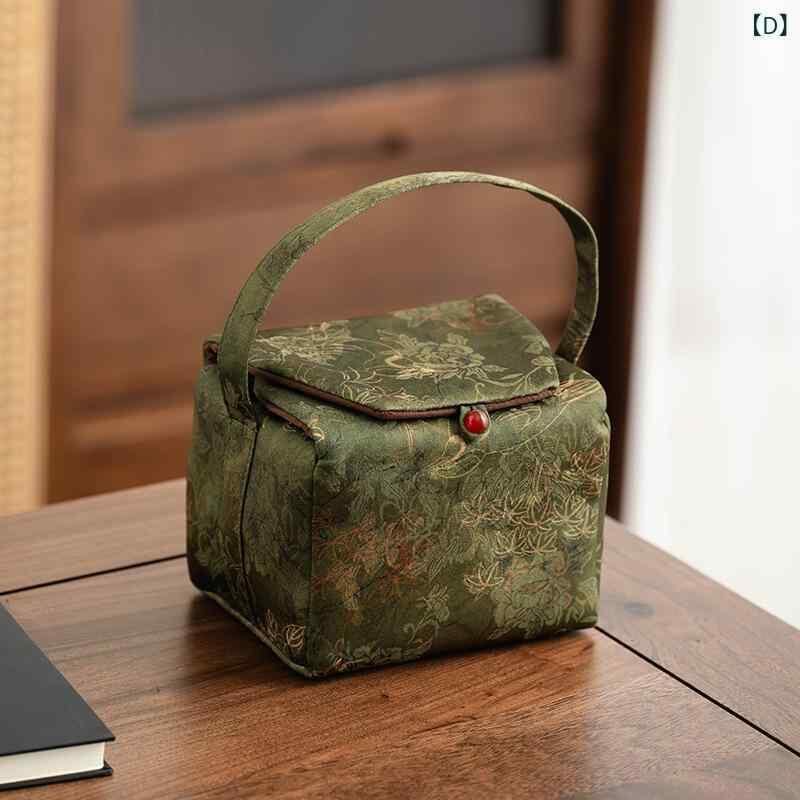茶道具収納バッグ モダンチャイニーズスタイル 宋錦織り 布製 厚手 クッション性 手提げ スクエア型 携帯用 アウトドア 旅行 ピクニック 茶器ケース