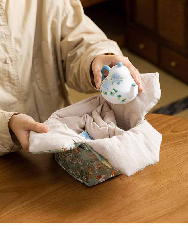 茶器 収納バッグ 厚手 綿布製 団花柄 中国風 携帯 旅行 手提げ コンパクト お茶会 アウトドア 急須 公道杯 湯呑みセット収納
