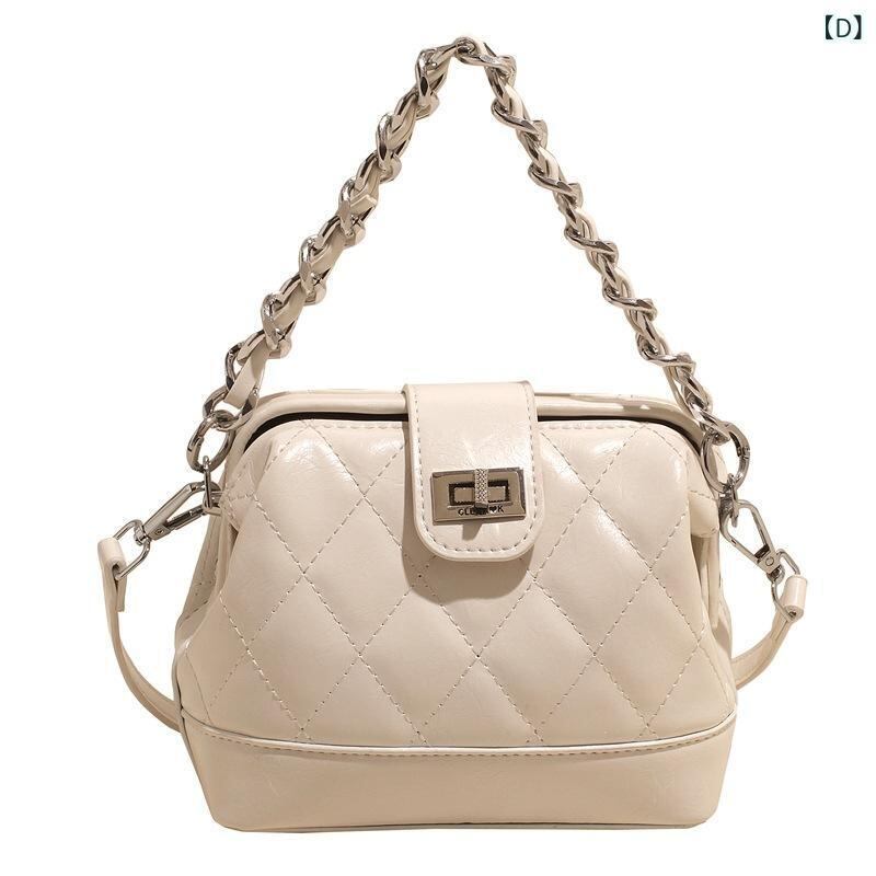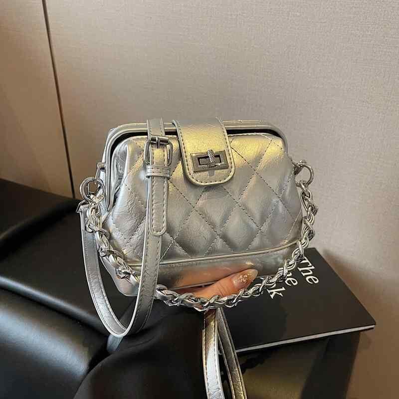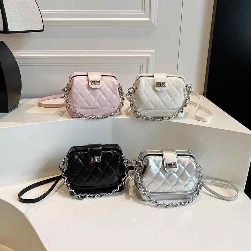 鞄 レディース レトロ 個性的 ミニスクエア ハンドバッグ キルティング チェーン ショルダーバッグ 斜め掛け PUレザー ロック金具 柔らかな素材感 韓国風 普段使い 春夏 ブラック シルバー ピンク ホワイト