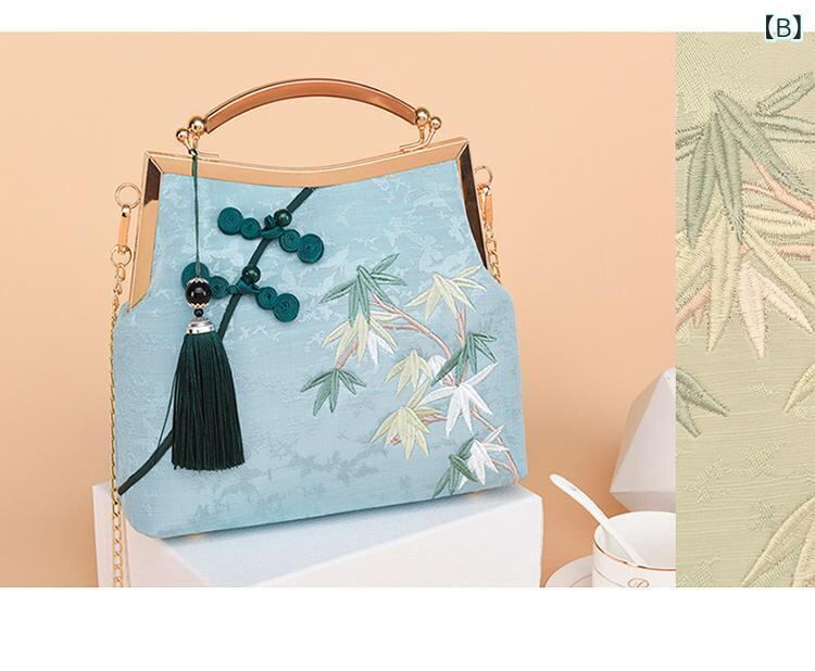 バッグ レディース レトロ ヴィンテージ 中国風 オリエンタル 刺繍 バンブー 手提げ がま口 ショルダーバッグ チャイナドレス 和装 エレガント グリーン ブルー お出かけ パーティー