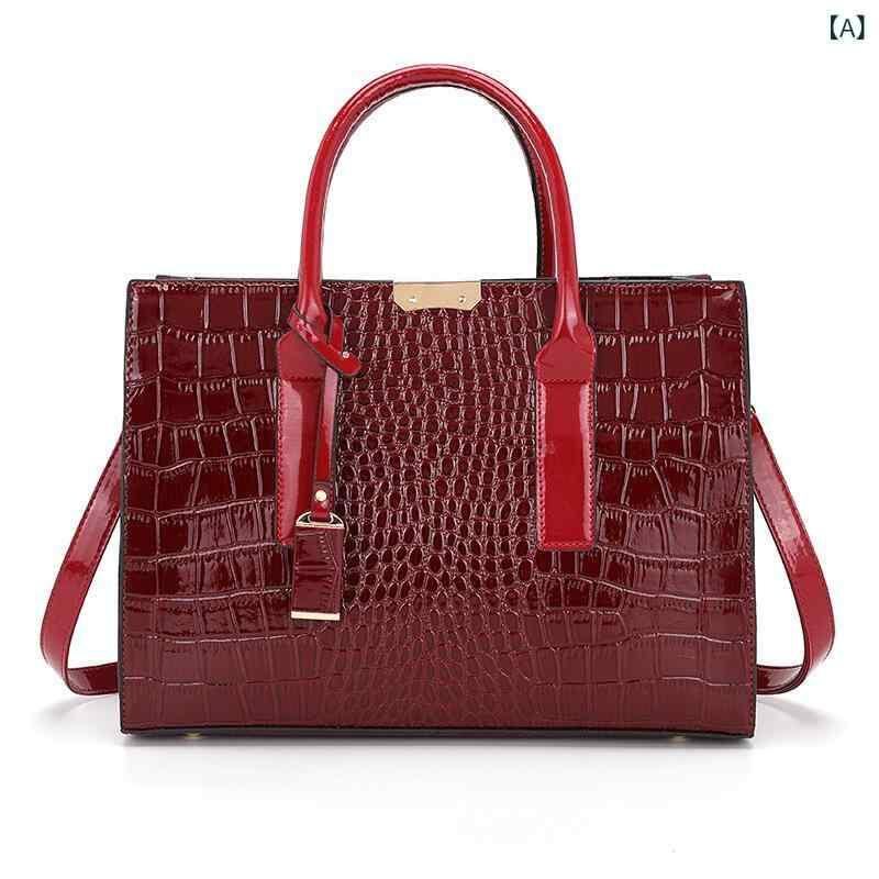 バッグ レディース クロコダイル柄 型押し ハンドバッグ ショルダーバッグ 2WAY 欧米風 レトロ ヴィンテージ 春夏 PUレザー デイリーユース お出かけ おしゃれ ファッション トレンド レッド ブラック ブラウン 縦型 スクエア ソフト